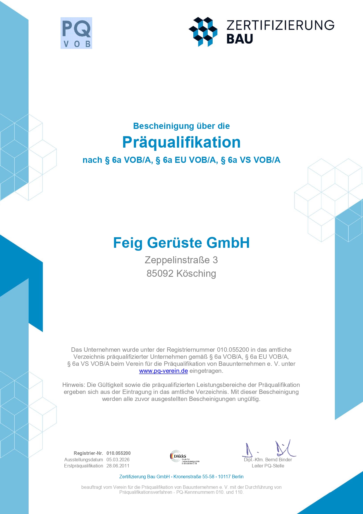 Mehr ErfahrenDie FEIG GERÜSTE GmbH ist ein regional etabliertes, national und international agierendes Unternehmen für Gerüstbau, Gerüstverleih, und Gerüsthandel und hat schon Bayernweit sowie in vielen Ländern Europas von Norwegen bis Italien, von Finnland bis Belgien Aufträge übernommen und kompetent, schnell und zuverlässig abgewickelt.Unsere Firmenzentrale befindet sich in Kösching bei Ingolstadt.